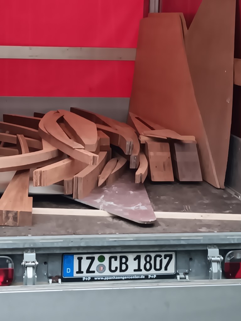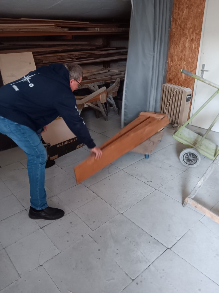 Ein Punkt, der uns besonders wichtig ist, ist, kein Material zu verschwenden. Wenn eine Sperrholzplatte zugeschnitten wird, wird diese so angezeichnet, dass möglichst wenig Verschnitt entsteht. Die Reste werden aufbewahrt und beim nächsten Zuschnitt erneut genutzt.